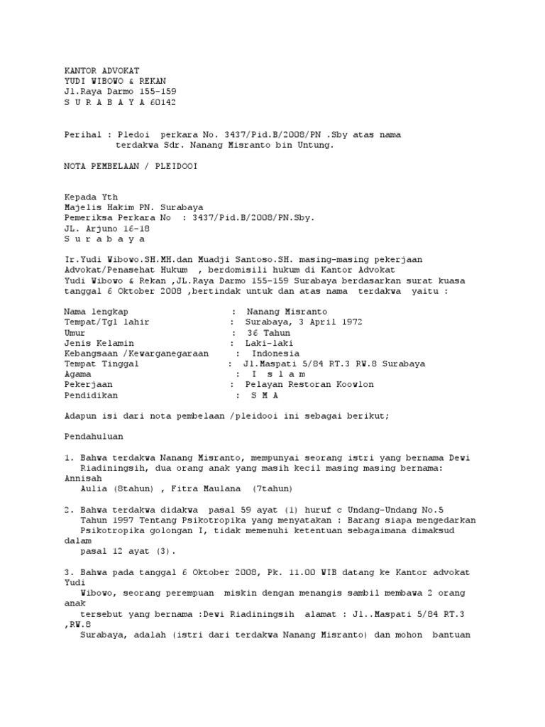 Doc Contoh Nota Pembelaan Atau Pledoi Dodo Dodo Academia Edu
